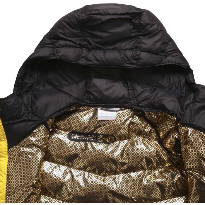 Warm ist die Columbia Herrenjacke LABYRINTH LOOP™ HOODED JACKET. Die Oberfläche ist wasserabweisend, während das Innere mit recycelten Kunstfedern gefüllt und mit der thermoreflexiven Omni Heat INFINITY Technologie gefüttert wurde. Das Steppdesign wird von Details wie einen zuziehbaren unteren Saum, einen Kinnschutz und elastischen Handgelenken ergänzt.